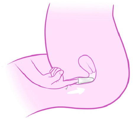 7. Εισάγετε στον κόλπο σας το ταμπόν με το δείκτη σας να είναι στραμμένος προς τη μέση σας (εικόνα 2).